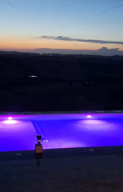 Mit Pool und Blick auf Meer und auf Hügellandschaft